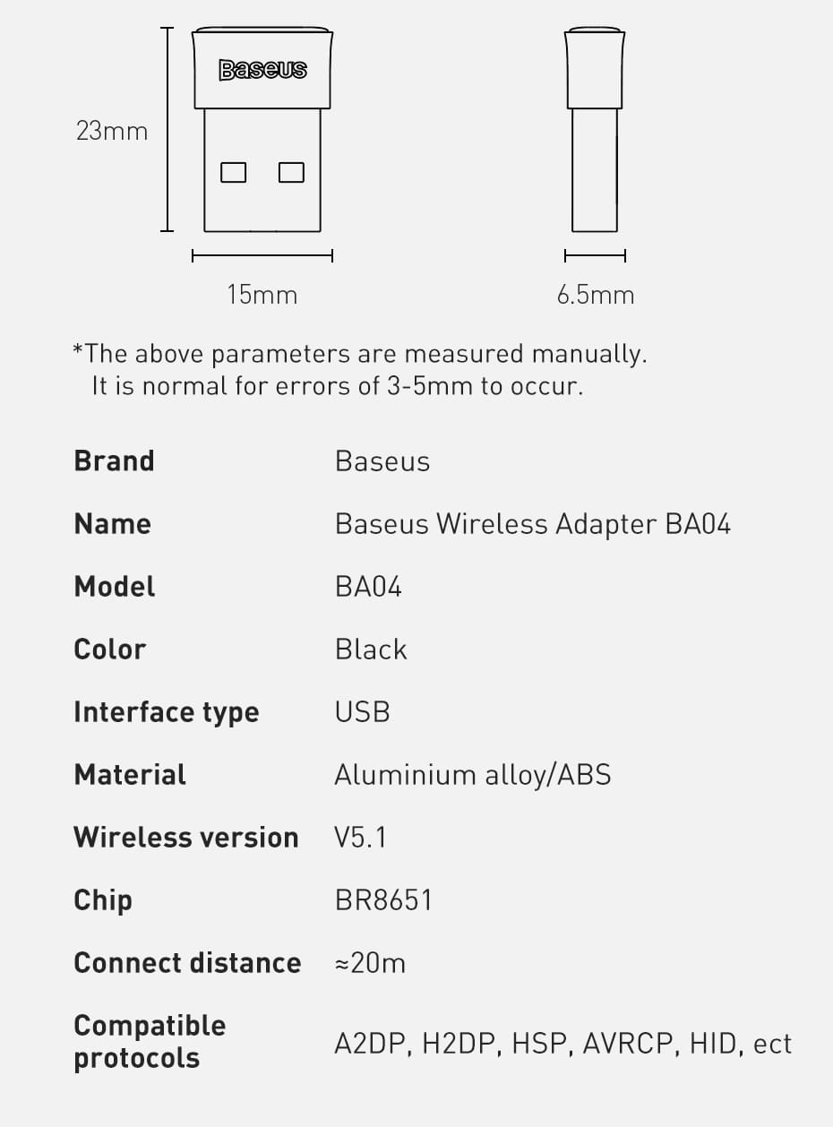 Name: Baseus BA04 Bluetooth Adapter Dongle